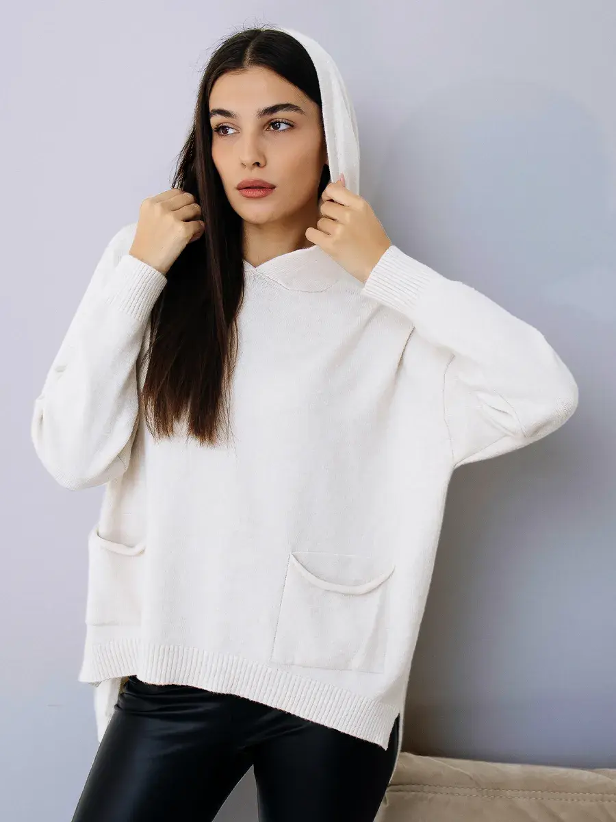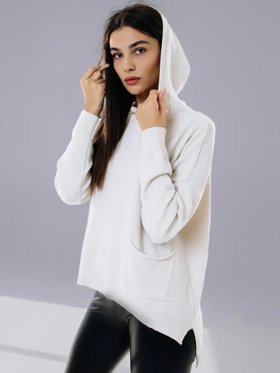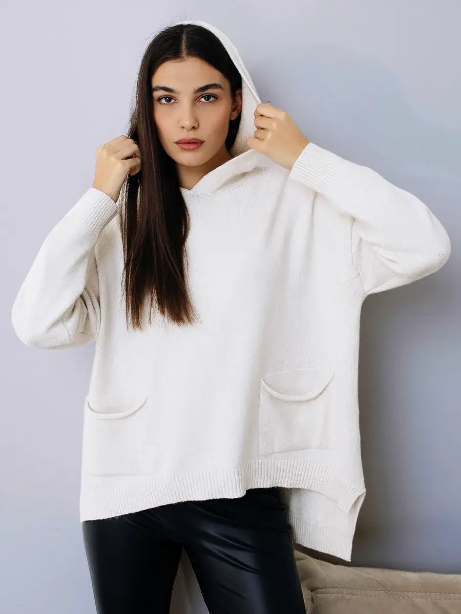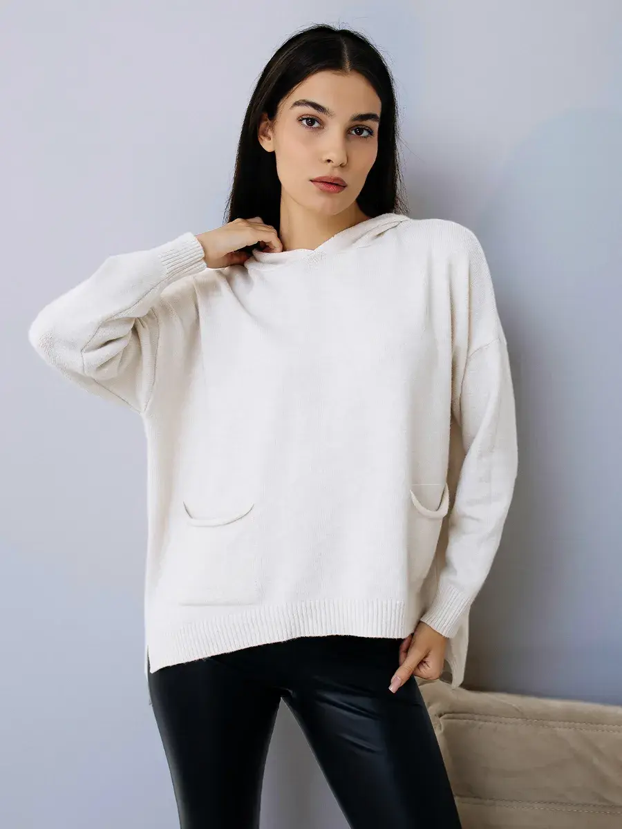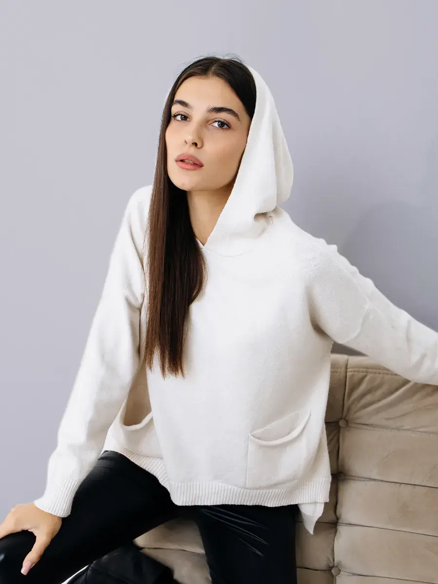 Этот стильный свитер оверсайз с капюшоном в базовом молочном цвете станет незаменимой вещью в вашем гардеробе. Изготовленный из мягкого и приятного к телу материала, он дарит невероятный комфорт и уют в холодное время года.