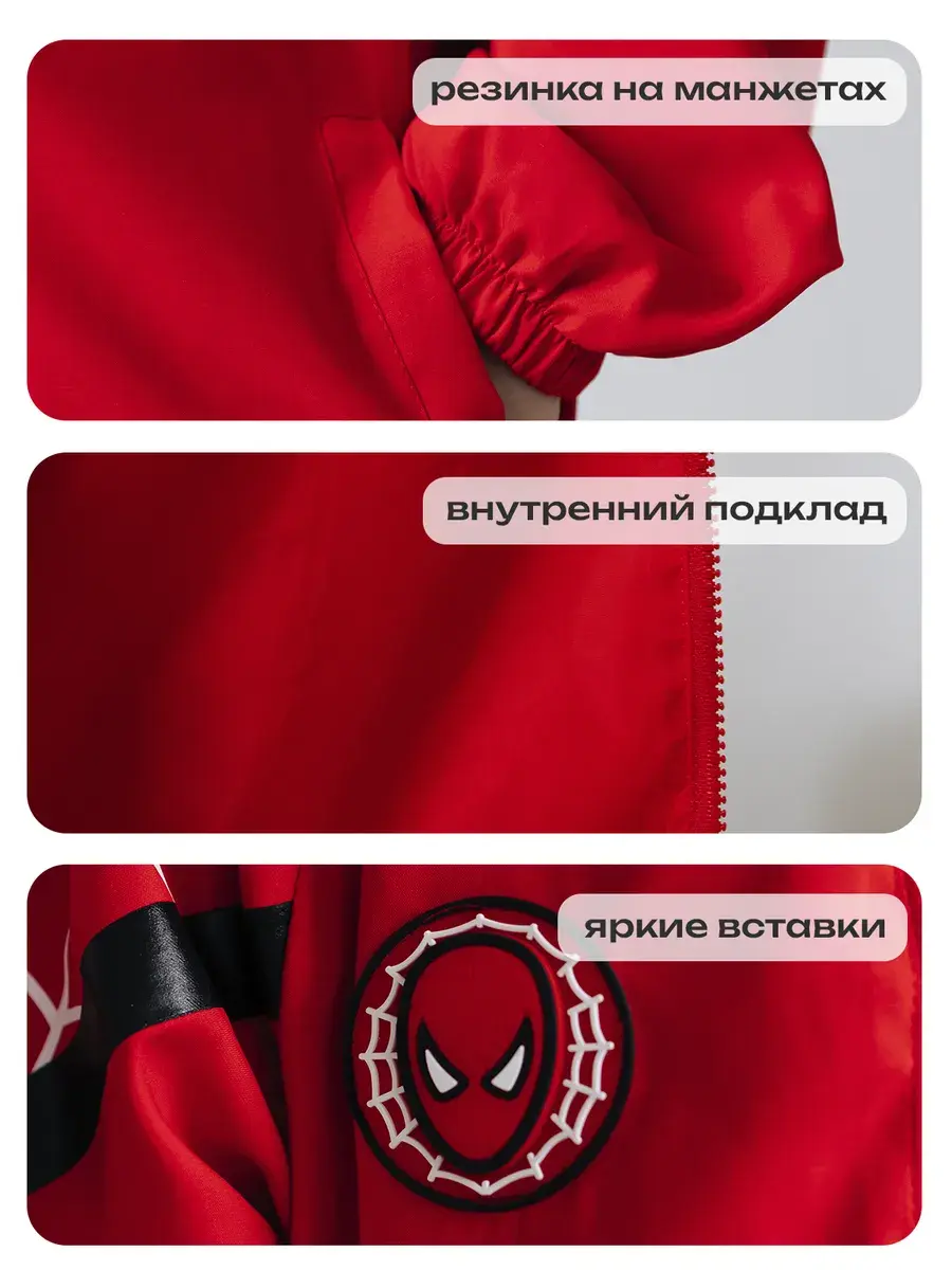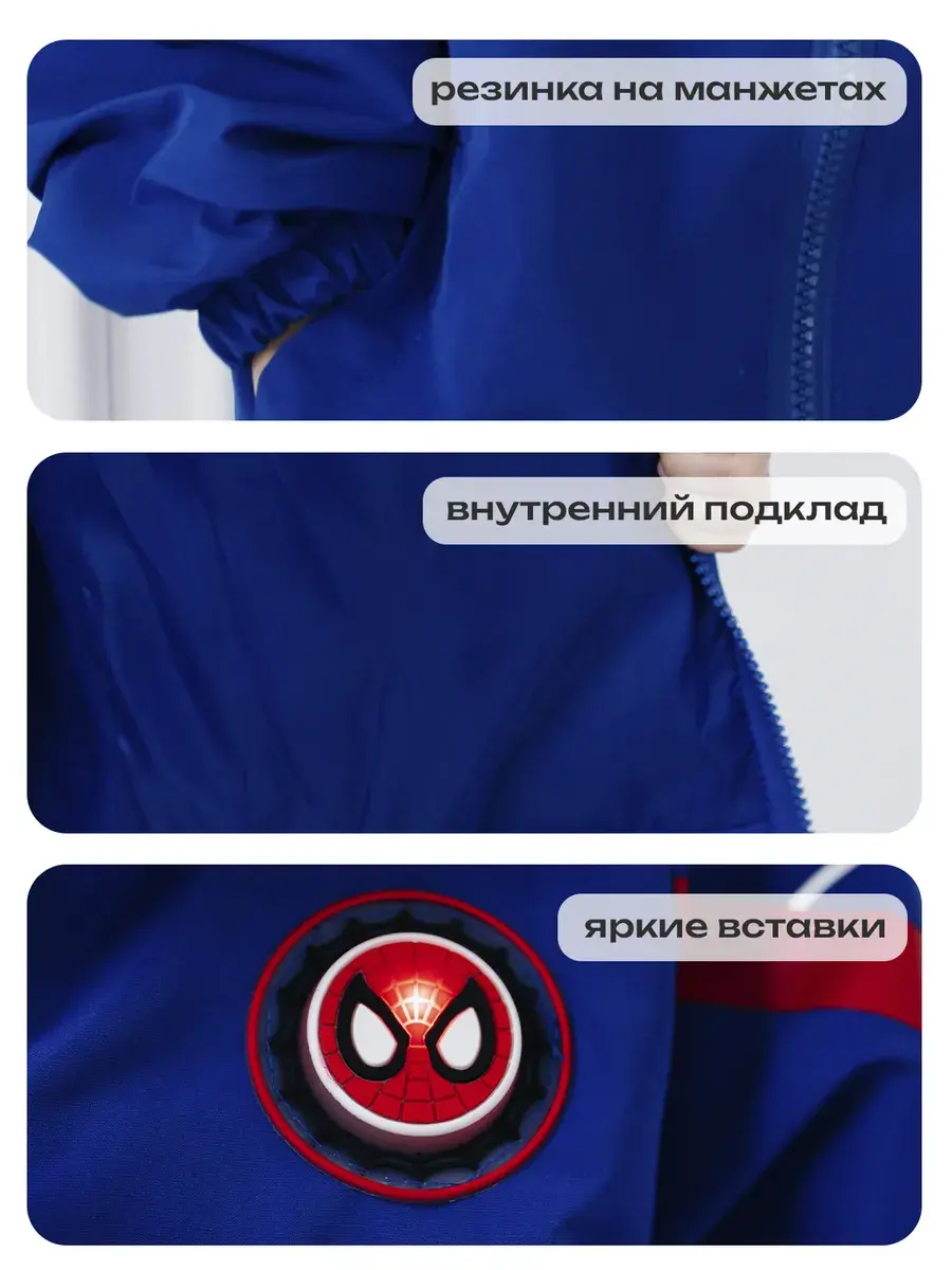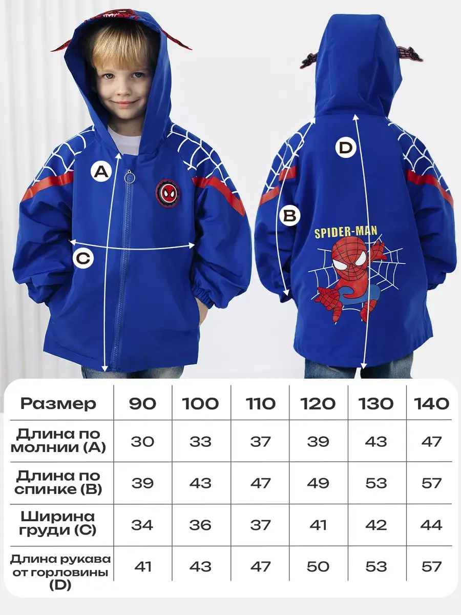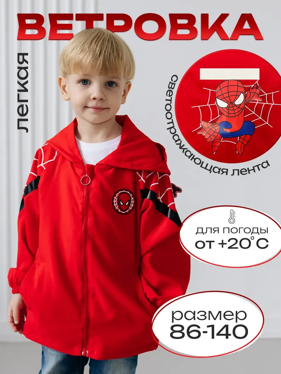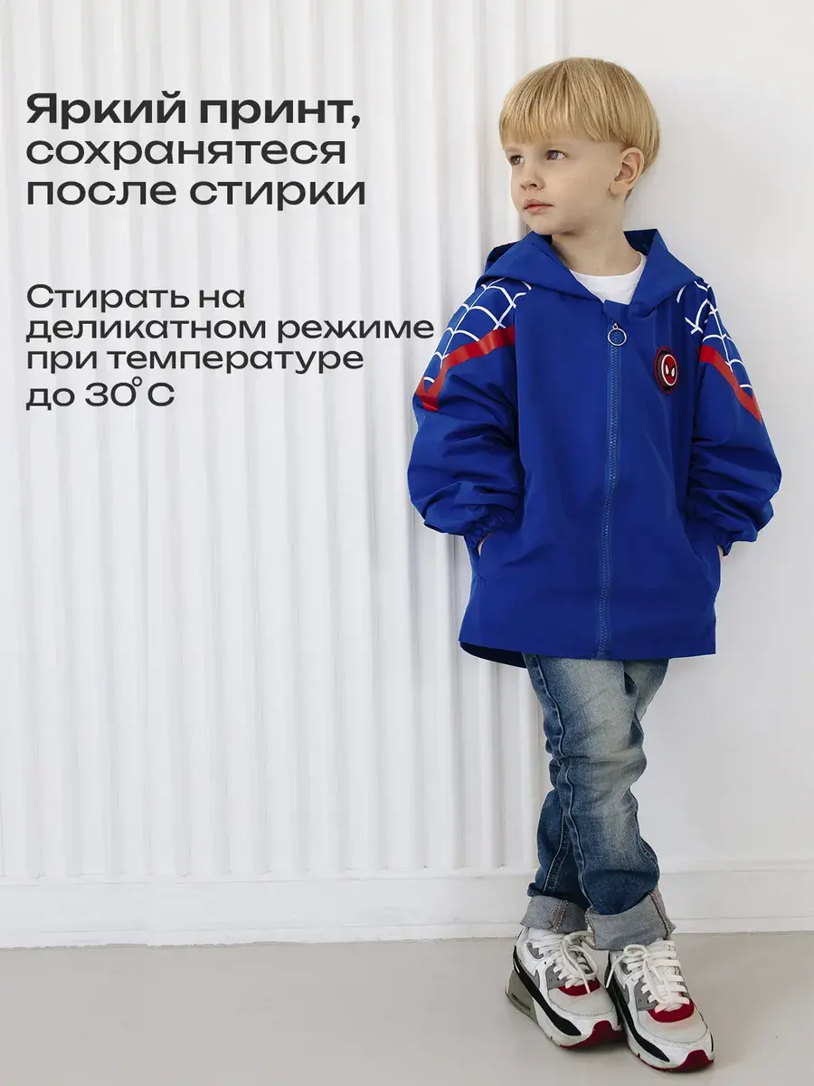 Детская ветровка без утеплителя для мальчика с несъемным капюшоном и рисунком Человека-Паука придает ей стильный и яркий вид - идеальная модель для маленьких поклонников этого героя. Куртка для мальчика состоит из прочного материала, который обеспечивает комфорт при активных играх и прогулках на свежем воздухе. Рисунок выполнен с использованием качественных и стойких к износу красителей, что позволяет сохранить яркость и насыщенность цветов даже после многократных стирок. Есть удобные карманы. Подойдет для прохладной погоды весной и осенью, она универсальна , когда не нужно слишком сильно защищаться от холода. Мягкая и приятная на ощупь. На рукаве имеется гибкая манжетка, которая не даст даже небольшому ветру проникать внутрь. Ваш ребенок будет чувствовать себя не только комфортно, но и выглядеть модно.