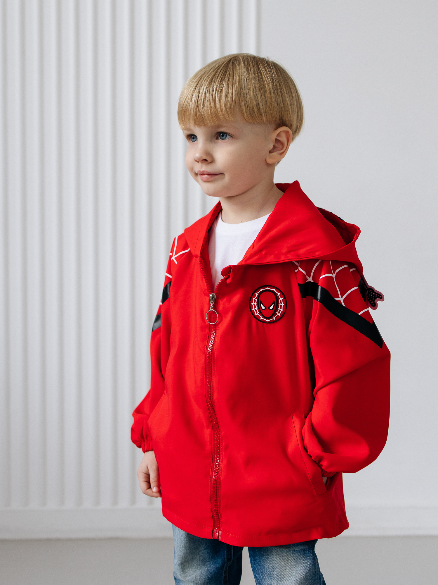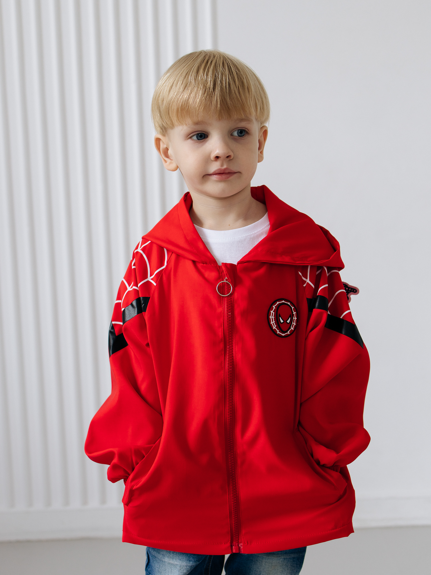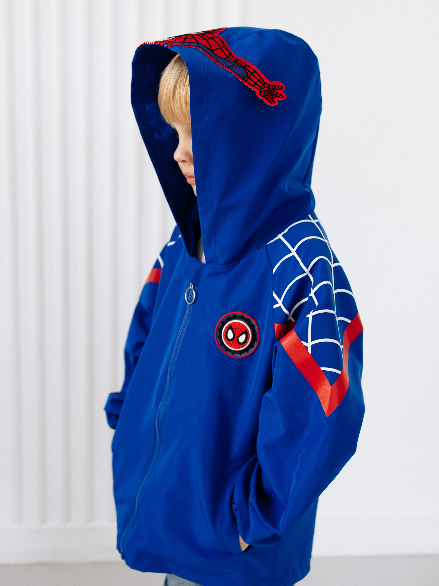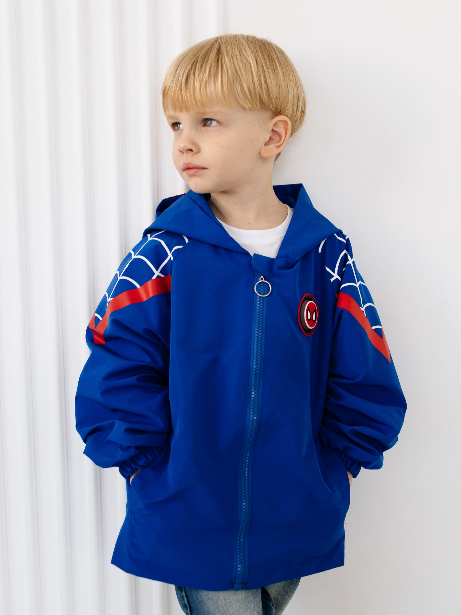 Детская ветровка без утеплителя для мальчика с несъемным капюшоном и рисунком Человека-Паука придает ей стильный и яркий вид - идеальная модель для маленьких поклонников этого героя. Куртка для мальчика состоит из прочного материала, который обеспечивает комфорт при активных играх и прогулках на свежем воздухе. Рисунок выполнен с использованием качественных и стойких к износу красителей, что позволяет сохранить яркость и насыщенность цветов даже после многократных стирок. Есть удобные карманы. Подойдет для прохладной погоды весной и осенью, она универсальна , когда не нужно слишком сильно защищаться от холода. Мягкая и приятная на ощупь. На рукаве имеется гибкая манжетка, которая не даст даже небольшому ветру проникать внутрь. Ваш ребенок будет чувствовать себя не только комфортно, но и выглядеть модно.