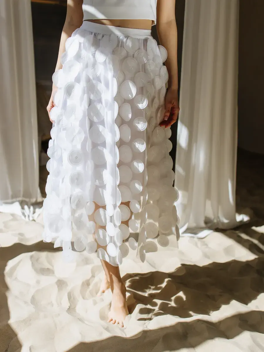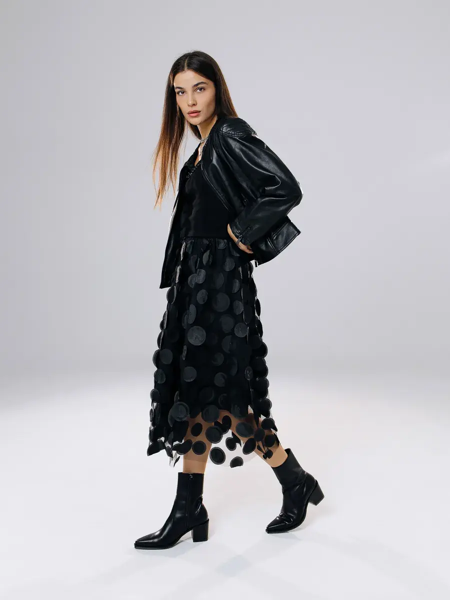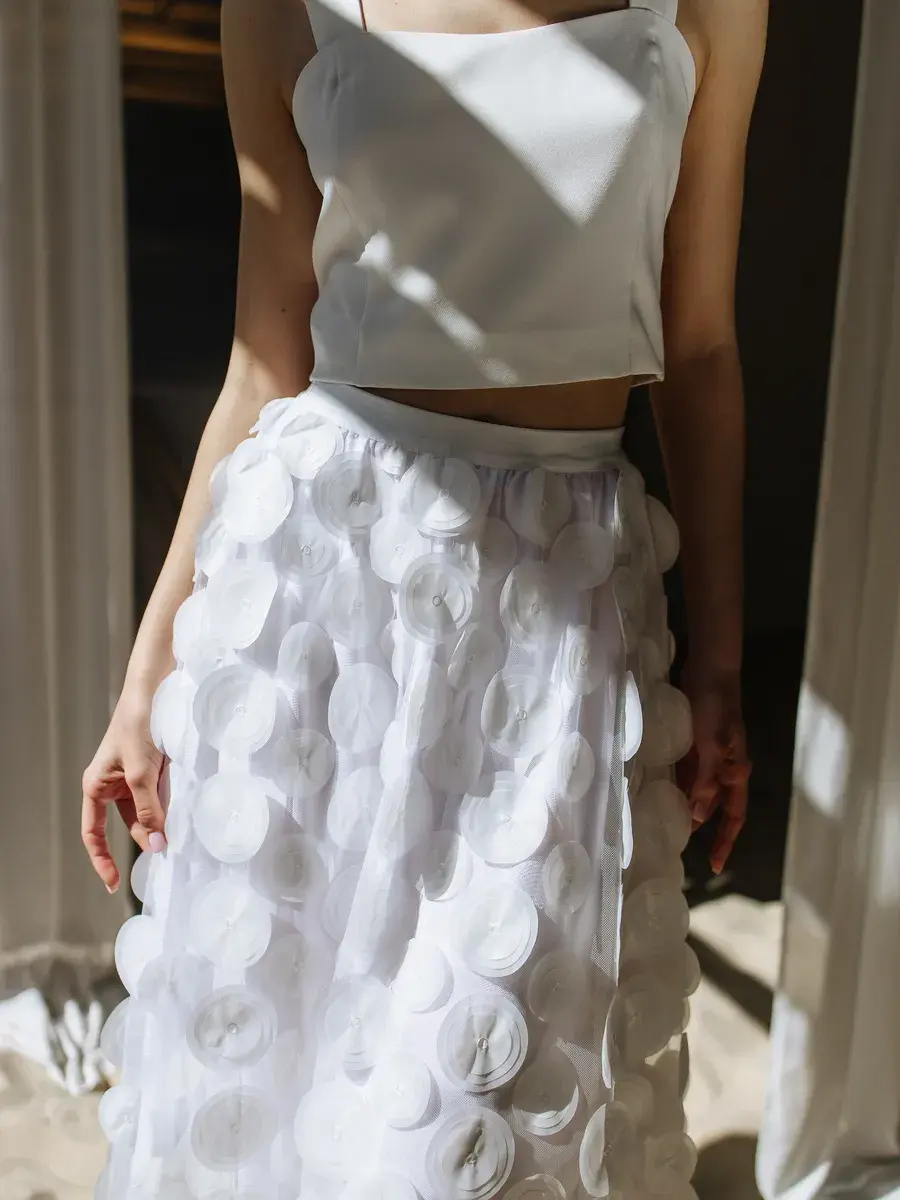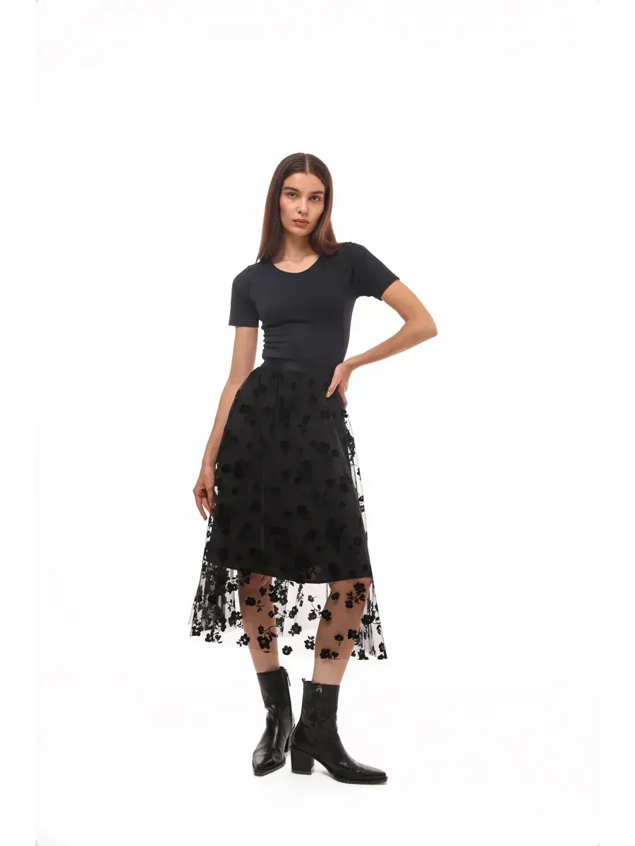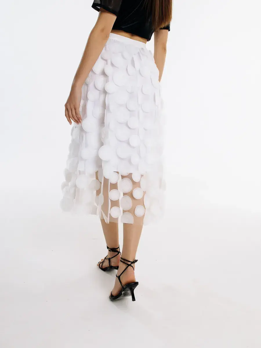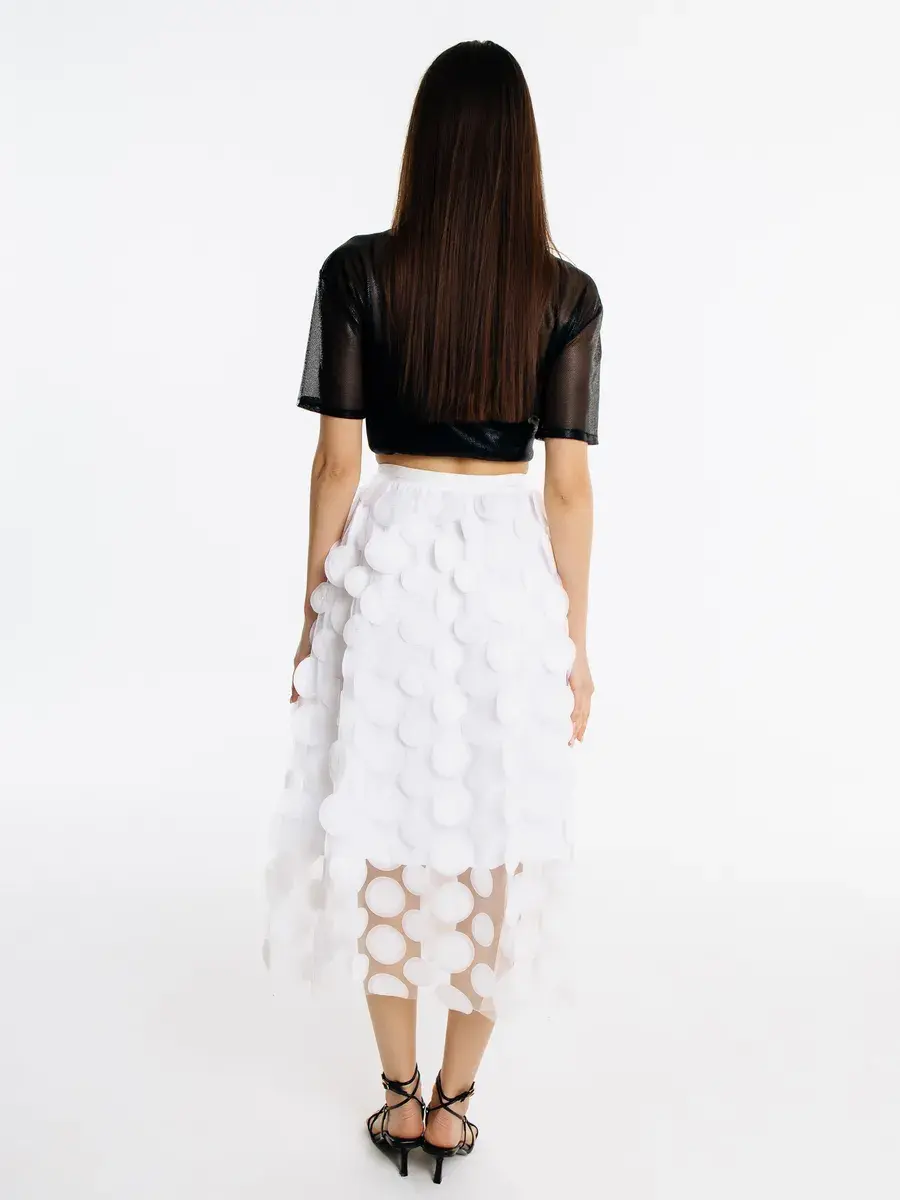 Легкая воздушная длинная юбка миди из мягкого фатина — идеальный выбор. Однотонная модель на удобной шелковой резинке выполнена в черном цвете и дополнена полупрозрачной сеткой с изящным цветочным принтом. Благодаря подкладу из вискозы и модному крою юбка выглядит стильно и уместна как для офиса, так и для торжеств — выпускного, корпоратива или праздника 1 сентября. Нарядная и женственная, она отлично подойдет девушкам и женщинам, ценящим элегантность и комфорт. Отличный вариант для вечеринки или школьного торжества.